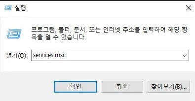 2. services.msc 를 입력해서 서비스 관리자를 실행합니다