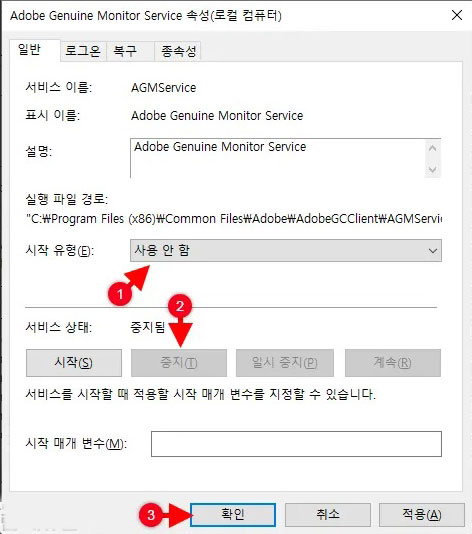 - Adobe Genuine Monitor Service 중지